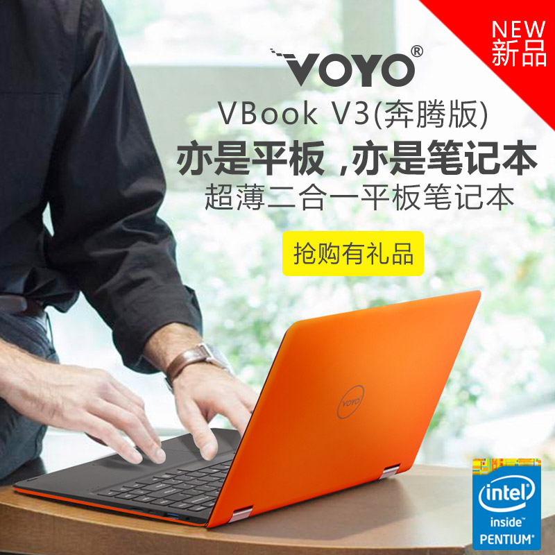 Voyo VBook V3奔腾版13.3英寸超薄固态Win10平板电脑二合一笔记本 送礼包 英特尔奔腾芯128G固态硬盘